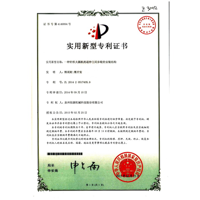 01一種針織大圓機的送紗主同步輪的安裝結(jié)構(gòu)
